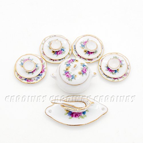 -. Feature : Scale: 1:12 Dollhouse Kitchen Miniature / Including: 1x Soup Tureen, 1x Tray of Soup Tureen, 1x Soup Bowl, 1x Ladle, 1x Tray of Soup Bowl, 4x Dishes, 4x Saucers, 4x Bowl (Not Including Other Items) / Approx. Size (LxWxH): Soup Tureen 3.4x2.7x2.4 cm - 1.3x1.1x0.9 inch / High Details and Workmanship: For Dollhouse Decor of Kitchen, Diningroom, Livingromm, Restaurant, Bar etc.
