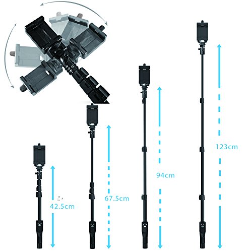 ULTRA EXTENDABLE AT 49", HARDLY TELL IT IS A SELFIE PICTURE! : Quick Flip Locks – No Twisting To Lock - Wobble Free Selfies - Toughest Material, Durable / Non-slip sure grip rubber handle - Dimension: 18.5x2x2". Weight: 10 oz.