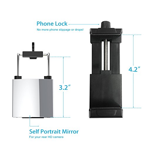 TWO INTERCHANGEABLE PHONE MOUNTS: Includes: One screw tight mount that is extendable to 4.2" - Eliminates phone slippage or drops. Plus a 2nd spring mount with additional mirror attachment for your rear HD camera - No need to look at phone screen. Fits all large smart phones, even with extra thick cases!!! Mount Smart Phone, GoPro, & Digital Cameras Quickly.