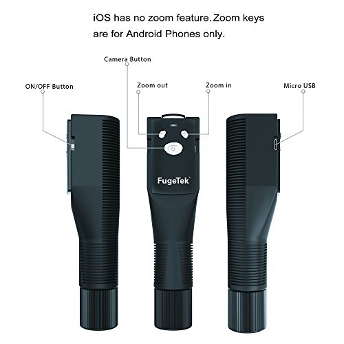 FAST CONNECTING BLUETOOTH REMOTE; USE WITH DIFFERENT DEVICES: iPhone, Android, Digital Camera (Bluetooth may be incompatible with some cameras) - Compatible with iPhone iOS and Android 4.3 or newer (*iOS has no zoom feature. *Zoom works on limited Android devices, Bluetooth remote incompatible with Go Pro). Bluetooth Remote connects faster than the competition - Rechargeable Battery, 300 Hours Standby, 1 Hour Full Charge.