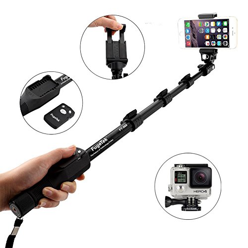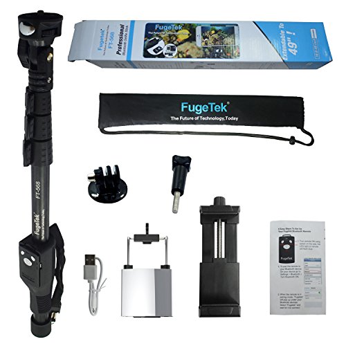 Fugetek FT-568 Professional High End Alloy Selfie Stick, Bluetooth Remote For Apple, Android, & DLSR Cameras (Black)