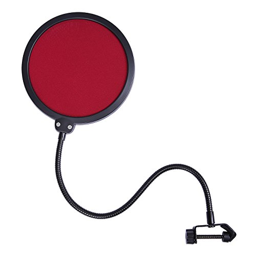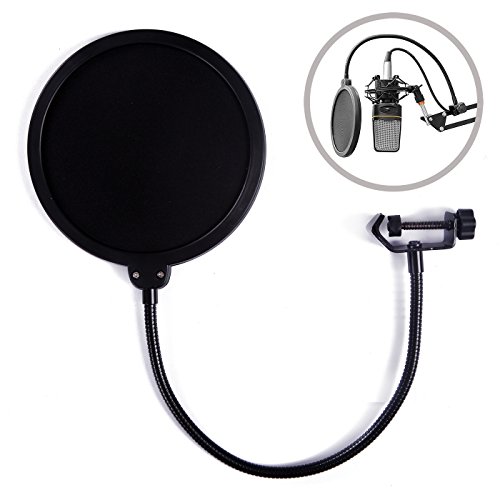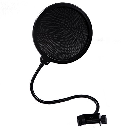 -. Feature : Get loud and clear recordings with the double screen mesh design that efficiently reduces wind interference, saliva spraying, and entering dust | Reduces corrosion and mold to extend the microphone's life / No more plosives, mesh screen reduces popping noise during recording when saying words that start with either P, T, K, D, G and B | For best result position pop filter in front of recording area of microphone / 360 degree flexible gooseneck holder will support the weight of the shield and allow for easy trouble free positioning and placement of the microphone / Tightly fixed clamp can be attached to all types of microphones including blue yeti or desktop USB microphones, the screw on clamp is easily attachable will not damage the microphone / Measurements: 6-inch diameter shield, 14-inch flexible gooseneck, 2-inch adjustable clamp