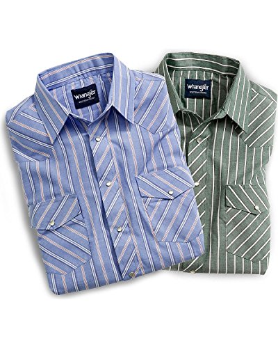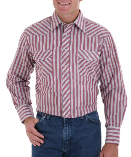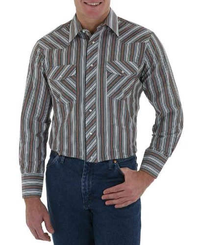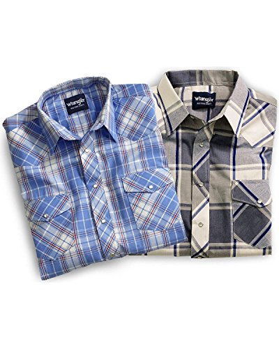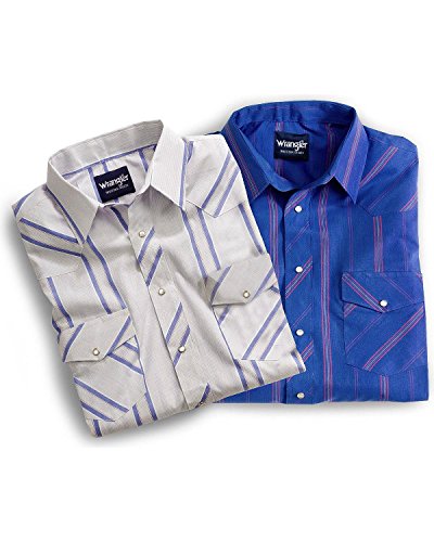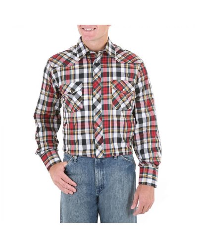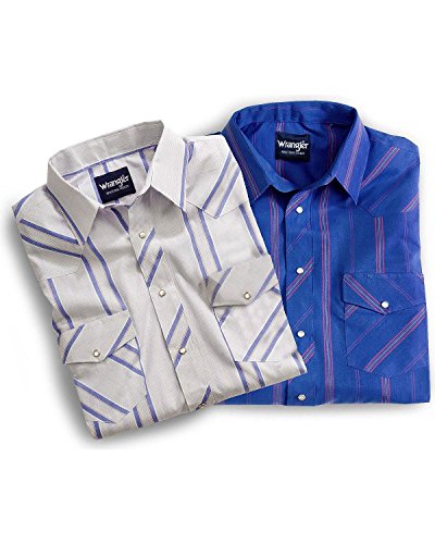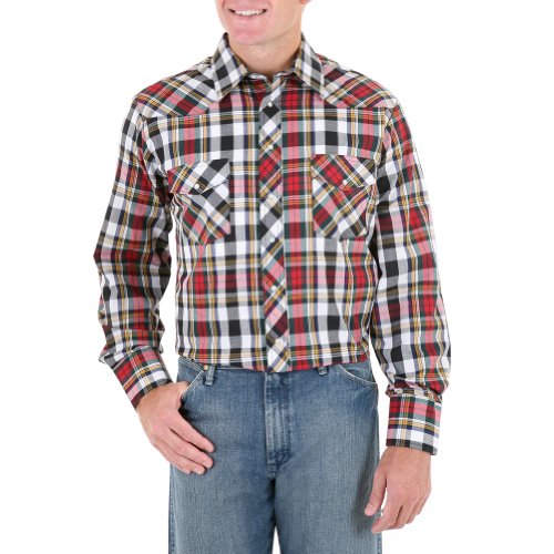 Studio : Wrangler Publisher : Wrangler Binding : Apparel Product Description Wrangler offers these quality western shirts, at a value price This classic western shirt features an easy-wearing spread collar. Two snap flap chest pockets. Pearlized snap closures at front placket, pockets, and three-snap cuffs. Serged tails. Men's western shirt is made of 55% cotton/45% polyester. Imported. PLEASE NOTE, color patterns vary at this low price; please select L8 stripe or L9 plaid. If you order more than one, we'll be sure to send different patterns. 0