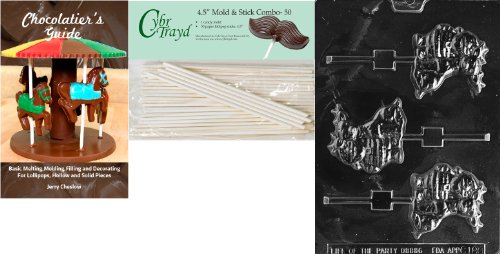 Cybrtrayd 'Santa with Reindeer Lolly' Christmas Chocolate Candy Mold with 50 4.5-Inch Lollipop Sticks and Chocolatier's Guide