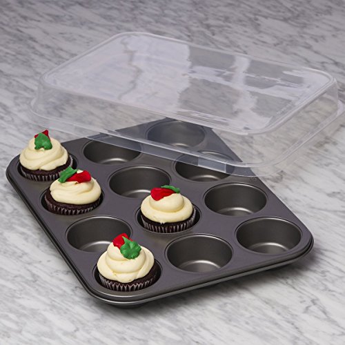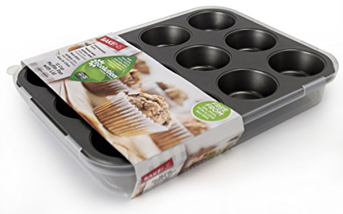 -. Title : Ecolution Bakeins Cup Muffin and Cupcake Pan with Lid - PFOA, BPA, and PTFE Free Non-Stick Coating - Heavy Duty Carbon Steel - Dishwasher Safe - Gray
