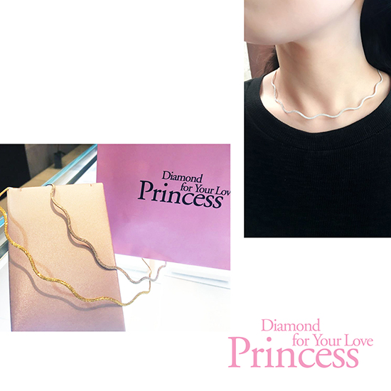 포인트 목걸이로 넥라인에 핏하게 안착되는 물결모양의