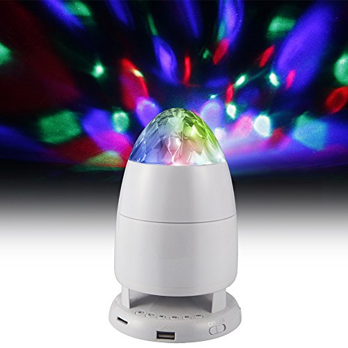 -. Feature : Party Disco Light Show -- Colorful disco ball light show synchronized to the music,projected on the wall and ceiling to add more fun to party or turn off the lights just enjoy the music. / Quality Sound -- Bluetooth speaker with powerful full-range 5W loudspeaker plus super bass,mini speaker with loud sound. / Multi function Music Speaker -- Loudspeaker streams music wirelessly via Bluetooth 4.0,automatically connect every time when turn on the speaker,quickly sync your music in seconds;Support TF card,USB disk or aux input for non-Bluetooth devices.Supports hand-free call. / Perfect Gift-- The best party speaker,it's fun and unique gift for Children, Young people who love party. / Rechargeable Battery -- 1200mAh Li-ion battery for 3hrs music time, recharge battery with standard micro USB cable.