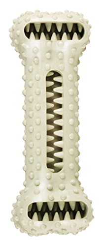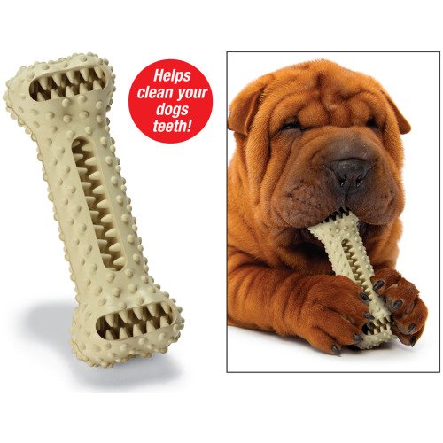-. Feature : Rubber dog bone / Textured to help remove plaque and bacteria / Stimulates gums, kept teeth strong / Can improve dogs' breath and oral health / Can be used with or without toothpaste