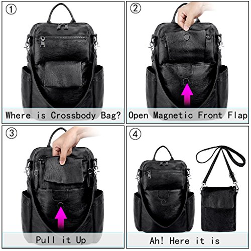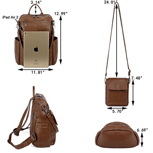 What are the dimensions? - 1)Backpack: 11.81" L x 6.69"W x 12.99"H. Adjustable back straps length: 39.76". Top Loop Handle drops: 3.14". 2)Crossbody Bag: 5.70" L x 1.37"W x 7.48"H. Adjustable shoulder strap drops: 24.01". 3)Weight: 2.45 pounds.