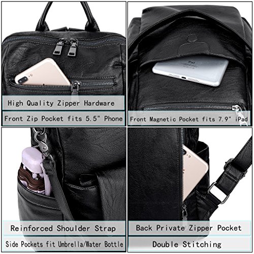 How many pockets of the backpack? - 1)Interior: 2 zipper pockets and 3 open pockets. 2)Exterior: 1 front key/coins zipper pocket, 1 magnetic pocket, 2 side open pockets and 1 back private zipper pocket, which can hold your iPad/Smartphone/Water Bottle/clothes/towel/books/pens/wallet/umbrella and other essential items.