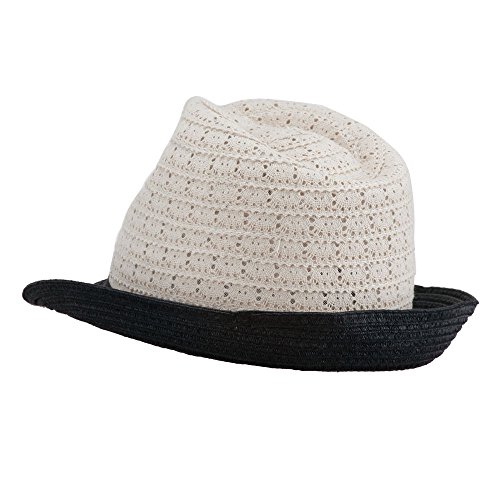 -. Binding : Apparel -. Brand : SS/Hat -. Department : womens -. Feature : Made of 50% paper straw and 50% cotton. / One size fits most ladies, fitting up to XL. / Fitted with an inner hatband. / Adult/Women. / Crown measures 4 inches deep. -. ProductGroup : Apparel -. ProductTypeName : HAT -. Title : Women's Cotton Paper Braid Fedora - Natural Black