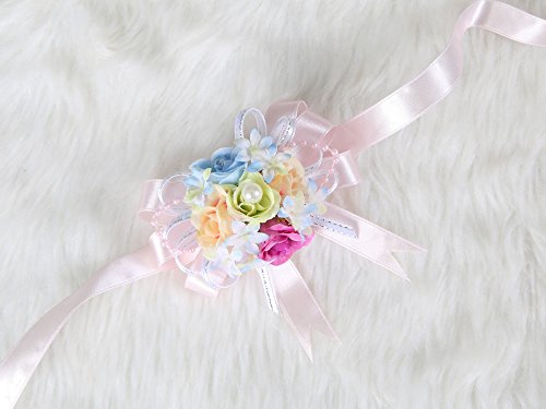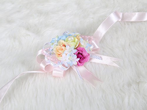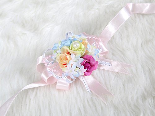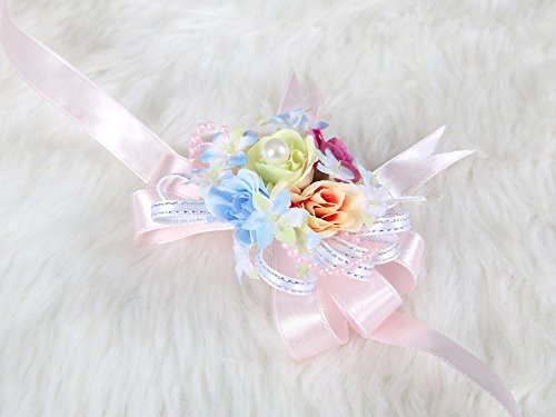 Lovely bridesmaid wrist flower corsage rose prom night party (Beautiful Pink)