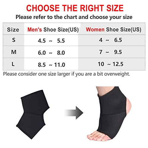 -. Feature : Application: Three sizes fit men's US shoe size 4.5 - 11, women US shoe size 4 - 12.5 (please choose your own size carefully before place the order). An ideal brace for both men and women who desires to protect and support ankles while performs any activities or everyday wear. / Open heel design: Can be better to contour with human's ankle and allows full range of movement. Premium moisture-wicking and ultra-breathable neoprene material features lightweight and conform to the shape of your foot and ankle. It provides good pinpoint compression, good air and blood circulation, suitable to wear in your shoes. / Great comfort: High quality neoprene features sweat absorbent, keeps your feet dry and odor-free. Provide solid compression without being too tight to restrict movement. Skin-friendly and breathable mesh lining material ensures a comfortable user experience. / Best accessory: This ankle brace provides good compression, elastic and support and minimize excessive sweating, great for running, football, basketball, volleyball or everyday wear as well as relieving ankle sprains. / Satisfaction: See 'Special Offers' section and save more on multi-items purchase, visit our store by clicking the blue Fullmosa logo for more product options. We are dedicated to providing our customers with the best quality products. If you are not satisfied for any reason please contact us via Buyer Message directly.