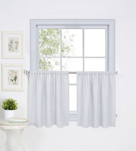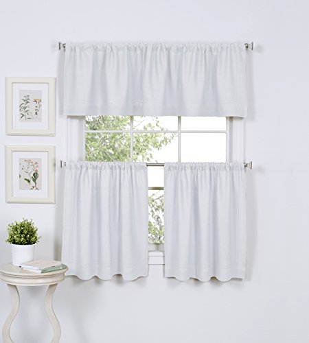 Studio : Elrene Home Fashions Publisher : Elrene Home Fashions Binding : Kitchen Product Description Kitchen Tier Set of 2 - hemstitched rod pocket window kitchen cafe curtain tier featuring a crisp, classic design, the inviting color is simply refreshing. Rod-pocket styling fits rods up to 1.5 inch diameter rods. Double hemstitching detail. Easy-care fabric. Linen/Rayon. Machine washable. Tier sold in set of 2. Valance sold separately. 0