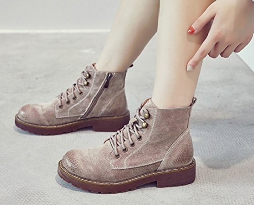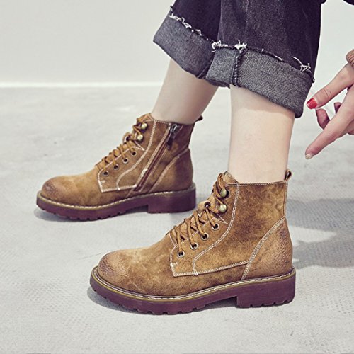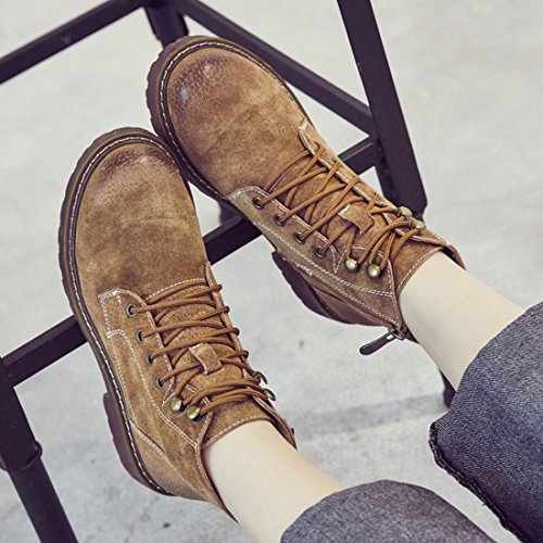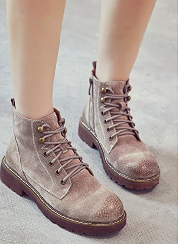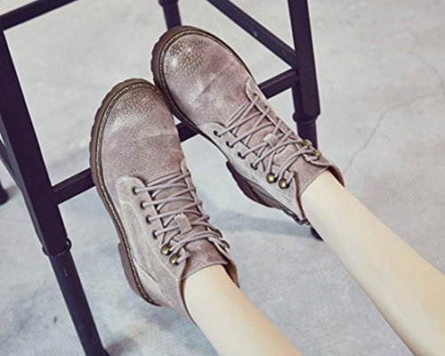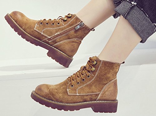 (TDA)/Women's/Boat Shoes/DIRECT FROM USA/TDA Women's Fashion Lace-up Faux Suede Leather Retro Stitching Ankle Martin Boots