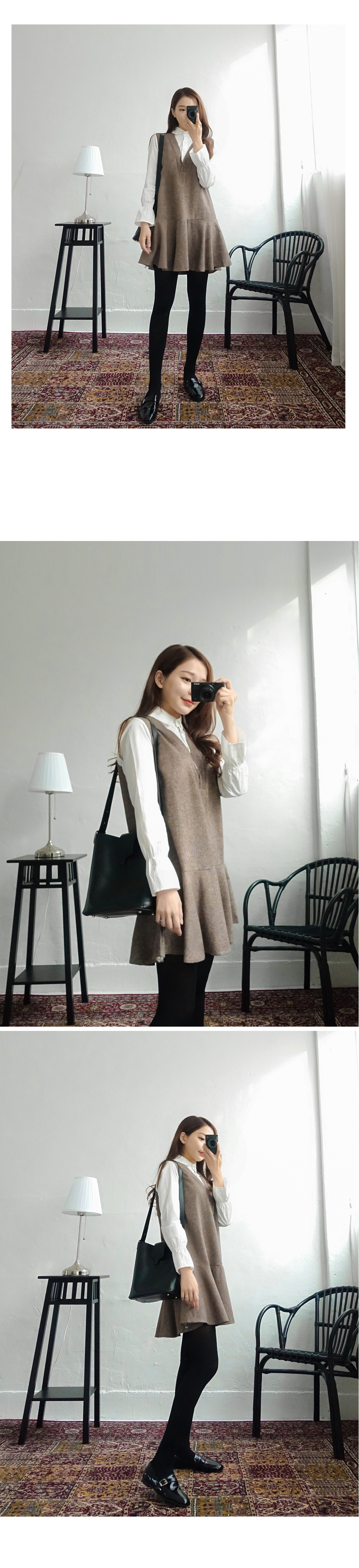톡톡한 소재감의 모직짜임 원피스로