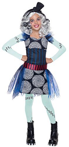 -. Binding : Toy -. Brand : Rubie's -. ClothingSize : Girls Small (4-6) - Girls Large (12-14) -. Color : Multicolored -. Department : girls -. Feature : Brand new Authentic licensed Halloween Standard Frankie Stein costume / Child Size Girls Small (4-6) - Girls Large (12-14), approx ages 3-10. All measurements provided by Rubies and are approximate. If in doubt please purchase larger size and children will grow into it. / This posting includes: Frankie Stein dress sleeves and leggings as featured / Please note that only the items listed above are included -. Label : Rubies - Domestic -. Manufacturer : Rubies - Domestic -. Model : 610624_L -. MPN : RC610624 -. NumberOfItems : 1 -. PackageQuantity : 1 -. PartNumber : RC610624 -. ProductGroup : Toy -. ProductTypeName : CHILDRENS_COSTUME -. Publisher : Rubies - Domestic -. Size : Small -. Studio : Rubies - Domestic -. Title : Rubie's Costume Monster High Freak Du Chic Frankie Stein Child Costume