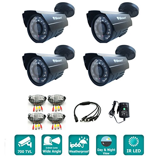 -. Title : iSmart 4-pack 700TVL Color CCTV Camera Security System Kit, Weatherproof Outdoor IP66, 3.6mm Lens C1030DP7