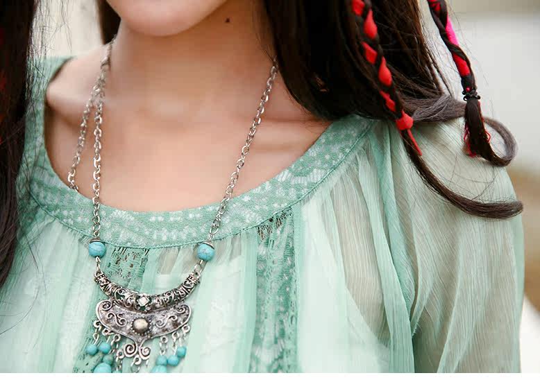 分段式的蕾丝拼接与浪漫的A字宽松版型契合的恰到好处,镂空透视感辉映绉感丝质更显异域风情。 蕾丝拼接
