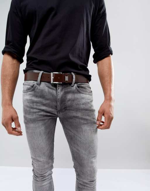 BOSS Smooth Leather Logo Keeper Belt in Brown