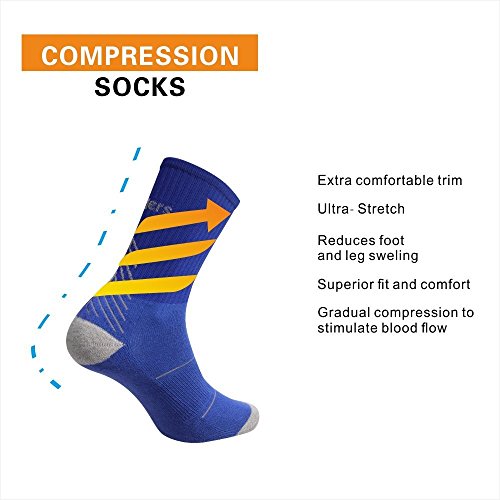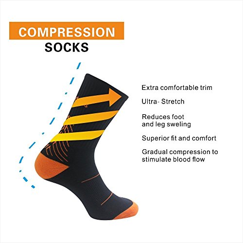 -. Binding : Apparel -. Brand : Chooee -. Department : mens -. Feature : 65% Cotton, 25% Polyester, 10% Spandex.Sports Socks / COMFORTABLE DESIGN: Our compression socks are designed to improve the circulation of oxygenated blood into the regions of the calf and shin,provide the support and functionality required for the reduction of muscle fatigue and alleviate swelling after exercise.The feet are made of comfortable cotton,enhance comfort /sweat-absorbent /shock absorption effect,both to ensure the protection needed for exercise,but also take into account the daily needs of comfort. / KEEP HEALTH: Moisture wicking, lightweight, quick drying with breathable mesh zones to improve airflow, can prevent the growth of bacteria and fungus effectively, keep feet dry, each of these properties help promote foot health. And it has high wear resistance and strength,will not be easily damaged, is your trusted product. / MULTI PURPOSE: Designed for everyday use and boost your performance for any sport activity,like cycling,running,walking,hiking,gym,playing basketball/rugby/tennis/soccer,or jobs that require you to be on your feet a lot and MORE,like nurses, doctors,teachers,chefs,line workers, retail workers,frequent travelers. / WHAT YOU CAN GET: We'll only provide you with best product and service, if you don't absolutely love your socks for any reason, let us know and we'll refund your money back or send you a replacement! Add your socks to your basket, to experience the ADLU customer satisfaction phenomenon! -. IsAdultProduct : 0 -. Label : ShenZhen Freeman Bicycle co.,ltd -. Manufacturer : ShenZhen Freeman Bicycle co.,ltd -. MPN : 20171219m04 -. PartNumber : 20171219m04 -. ProductGroup : Apparel -. ProductTypeName : SOCKSHOSIERY -. Publisher : ShenZhen Freeman Bicycle co.,ltd -. Studio : ShenZhen Freeman Bicycle co.,ltd -. Title : Chooee Men's Compression Socks Cycling Sports Outdoor Basketball Athletic Long Socks