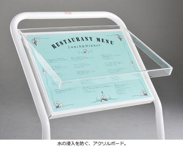 | 仕様 | 屋外対応 ボード部有効寸法:W420×H310mm(A3) 最大幅:558mm 最大奥行:420mm アジャスター付 |