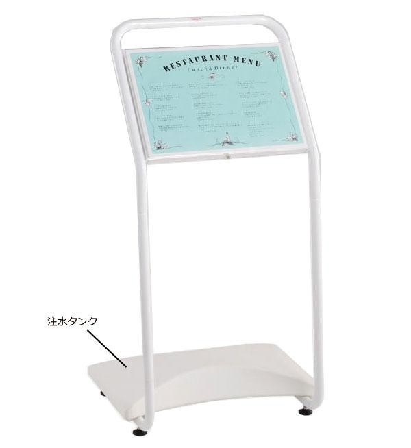 アルミフレームを用いた、屋外でも使用可能なインフォメーションスタンドです!!重しとして注水タンクを付属していますので、安定感は抜群です♪ |