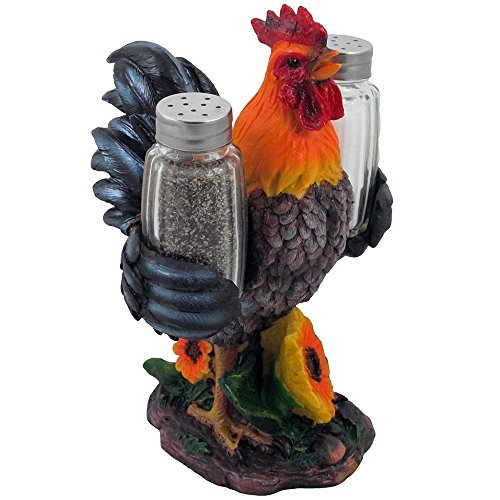 Decorative Farm Rooster Salt and Pepper Shaker Set with Holder Figurine for Rustic Country Kitchen Decor Sculptures & Collectibles As Gifts for Farmers or Gamecocks Fans