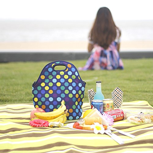 -. Feature : NEOPRENE MATERIAL: Made from thick neoprene, at over 3.5 thick. Non toxic, shockproof, waterproof, keeps food and drinks well protected. / CONVENIENT FOR CARRYING: These insulated neoprene lunch bag come with a detachable shoulder strap, that easily transforms into tote, shoulder bag or backpack freely as you need. / PERFECT SIZE FOR A MID-DAY MEAL: This is for all ages and makes a great present for kids, it makes it easy to go gourmet at school, work, or any time on the go. Whether you need to pack a snack or meal, this bag is a perfect fit. / INSULATING: Made of water-resistant neoprene materials, helping to inhibit the growth of harmful bacteria and keep your food fresh. The insulated lunch bag keeps your food nicely hot for up to 4-6 hours, depending on the outside temperatures and your Insulated Lunch Box. / DIMENSIONS: lightweight and foldable is easy and convenient to carry and storage. Stretchy insulated lunch bag, expands to fit a variety of containers.