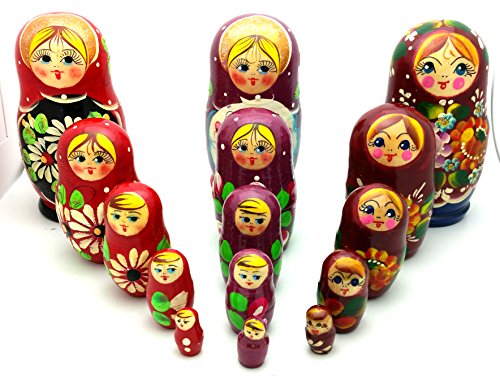 -. Title : Lot of 3 Sets Russian Traditional Nesting Stacking Wooden Dolls Each Matryoshka Babushka set contains 5 dolls