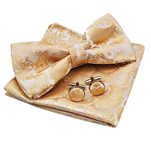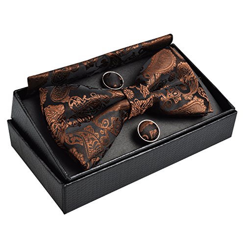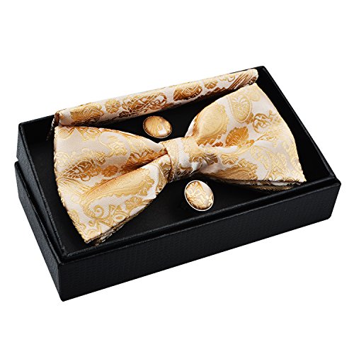 Binding : Apparel Product Description This beautiful tie set includes matching cufflinks and a handkerchief made from the same silk as the tie pattern. The Enjoymore tie would be for any formal or casual occasion. The texture is smooth and soft, the fabric is polyster. The interlining makes our ties heavy weighted and elastic, which are easily designed for a knot. It comes in a range of designs and colors. It would make a gift and an addition to any man's wardrobe. It is of high quality and you can be rest assured that it makes you look gorgeous on any occasions:Daily Dress, Business, Office, Meeting, Birthday, Wedding, Engagement, Party dress, Holiday gifts for men . Applicable season: All seasons Package Included: Tie,Cufflinks and Hanky Please note:There might be a little color difference due to the monitor, camera or other factors, please kindly modify your screen if it happens or tell us timely if you don't like it.
