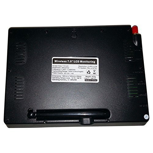 -. Feature : 2.4GHz Wireless 7.0 Inch LCD monitor with remote control; 380TV lines clear picture display / Built-in IR lights for night vision range;Weather-proof design for outdoor usage / 4-channel available to avoid interference / Built-in microphone for audio monitoring; Min. 100m transmission distance without blocks / Channel scan and channel skip for multi-camera usage