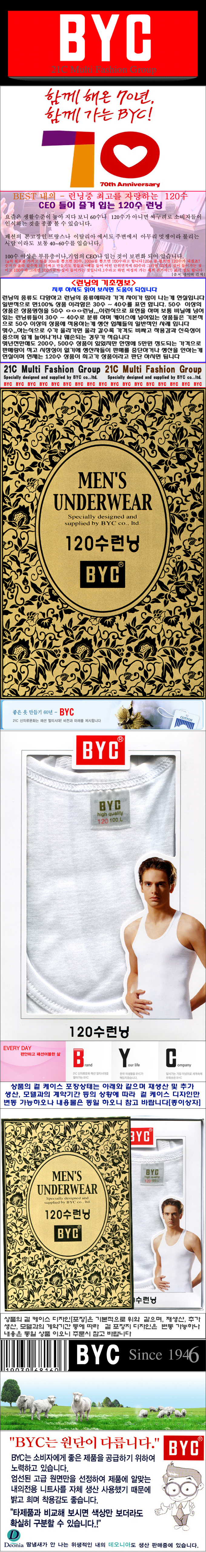 구 성 : [BYC 120수 하이퀄리티남성용민소매런닝 10종]