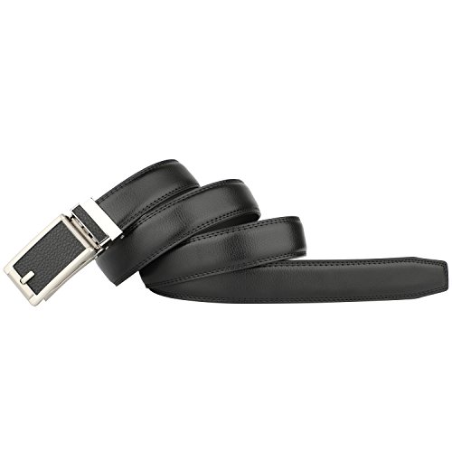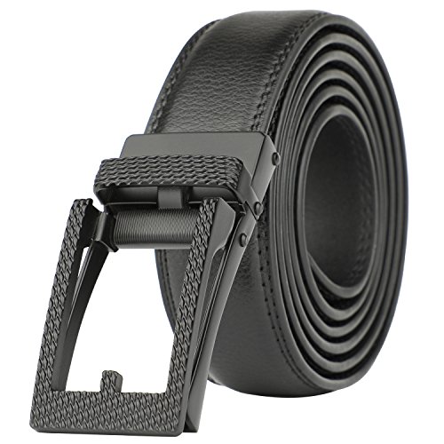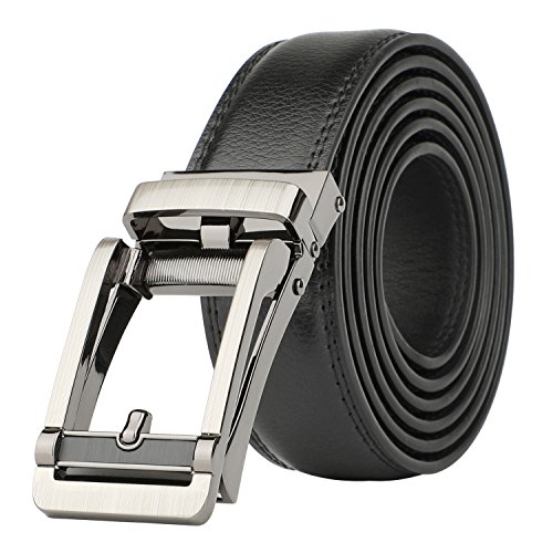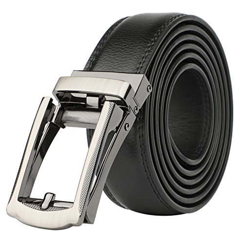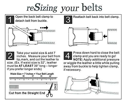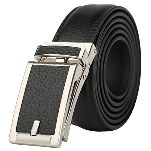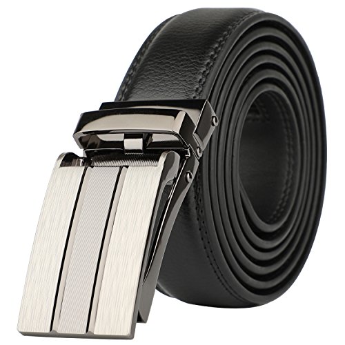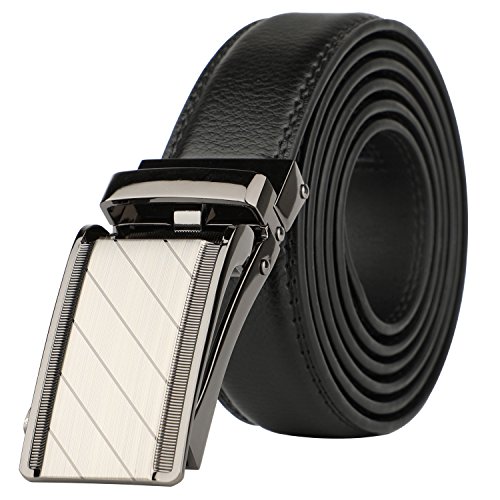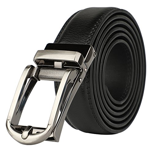 [Easy To Use]: Slide in the strap to tighten and the belt auto locks. Lift the buckle and pull to release. Quite easy to tighten and release. Special designed for men in dress suit, uniform and jeans.