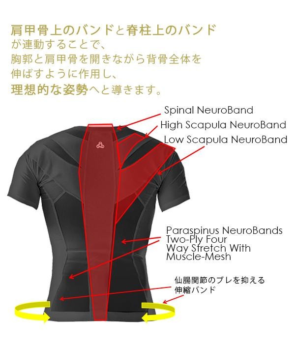 アメリカのALIGNMED社が開発した姿勢コントロールシャツです。肩甲骨上のバンドと脊柱上のバンドが連動することで理想的な姿勢へと導きます。