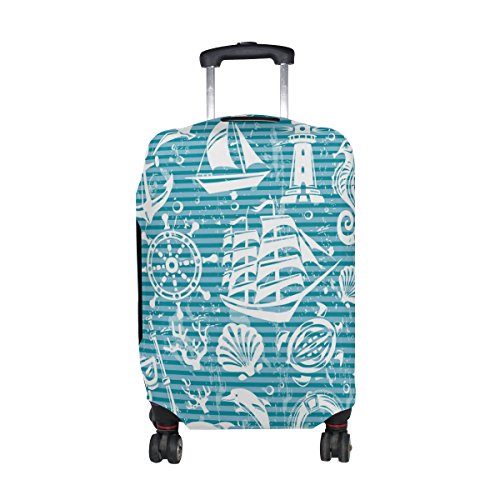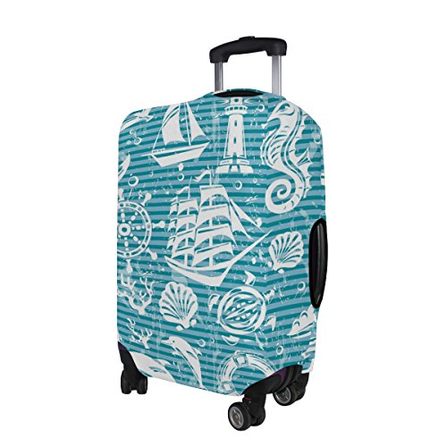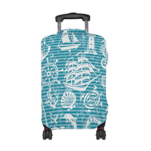 LORVIES Nautical And Sea Icons Set Print Travel Luggage Protective Covers Washable Spandex Bagg...