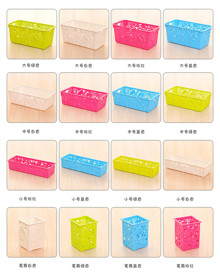 Slap-up Candy Color Multi Sizes Plastic Desktop Storage Box Hollow-out Thickening Office Stationery Holder House Organizer 8901