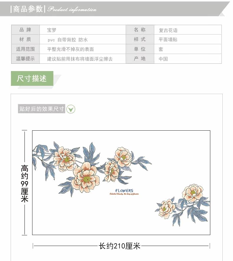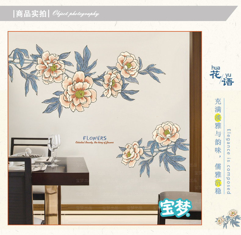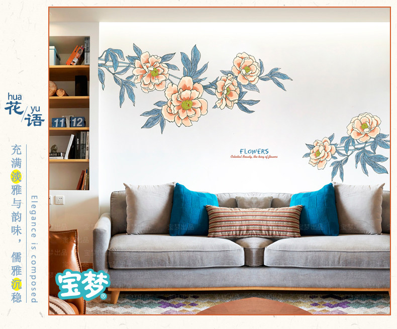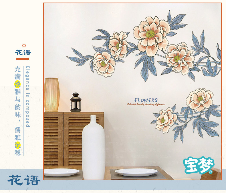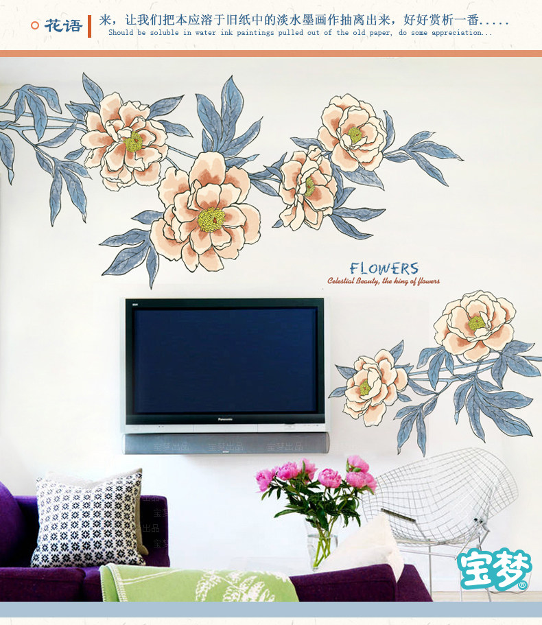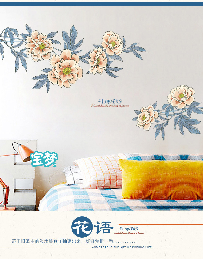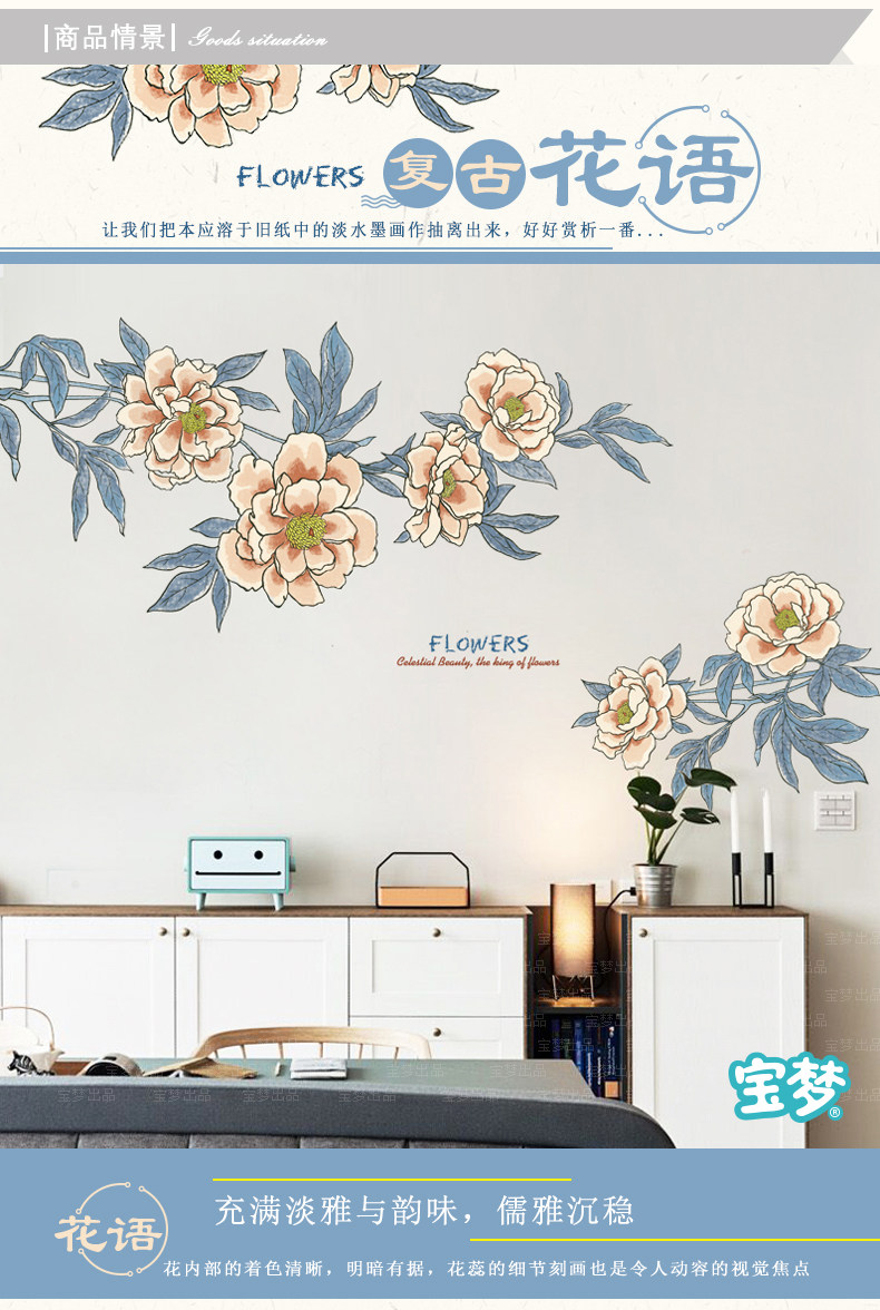 大型文艺复古花朵装饰品墙贴纸创意温馨卧室客厅沙发背景自粘贴画