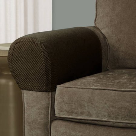 -. Title : Pixel Stretch Fabric Furniture Armrest Cover, Set of 2, Costa Brown