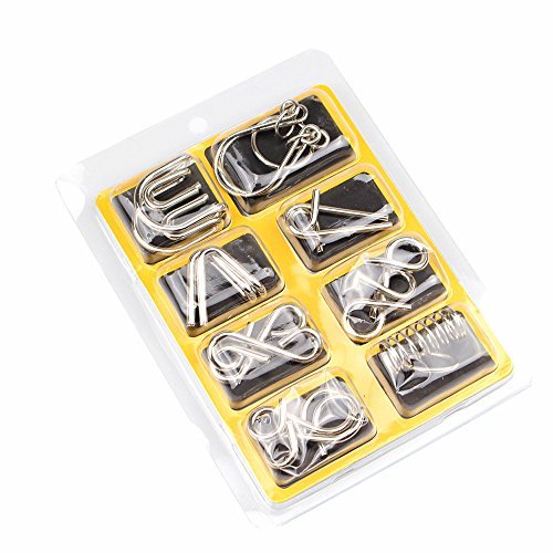 Studio : THILO Publisher : THILO Binding : Toy Product Description Product weight: 0.3 kg / set Packaging size: 18*13.2.2cm Appropriate age: 5 years old Material: High quality metal Product features: *Chinese traditional folk intelligence toys, high IQ people can unlock the blacksmith puzzle *Unlocking them takes a long time, which can also train people's patience *It can also increase the difficulty according to their needs. This metal puzzles set consists of 8 classic Metal Puzzles, all of these puzzles are very classic and popular, very ideal for kids and adults because it combines both logic and creative thinking. It is also an ideal gift for kids. This product aims at training imagination, dexterity and coordination for kids. This toy consists of nine interlocking links. unlocking them takes a long time, which it can also cultivate people's the spirit of work study focused and your patience. You can be assured of playing, because it is no burr, no rust, no fade, gloss durable, non-toxic, environment item. This product size designed according to the social survey, its size is in line with the requiremnets of most people, easy to carry, feel good. You soive the problem by yourself, then you will get achievement, but we still attach a diagram to satisfied with some people. If you have the spirit of challenge, CHALLENGE IT!!! 0