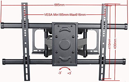 -. Binding : Electronics -. Brand : VideoSecu -. EAN : 0791090661478 -. Feature : Fits most TVs or Monitors from 37 up to 70 inch ( check VESA and weight ) / VESA compatible from 200x200 up to 600X400; Extension from wall: about 3" to 25"; / Maximum weight capacity: 165lbs; +/-3 degrees rotation for level adjustment / Adjustable 15 degrees tilt forward or 5 degrees backward; 160 degrees swivel from side to side (depend on the screen size), Cable management on arm / Fit up to 19.6" stud; Hardware pack includes standard size of screws to the TV and to the wall. -. Label : VideoSecu -. Manufacturer : VideoSecu -. Model : MW390B -. MPN : MPA65B8 -. PackageQuantity : 1 -. PartNumber : MPA65B8 -. ProductGroup : Speakers -. ProductTypeName : AV_FURNITURE -. Publisher : VideoSecu -. Studio : VideoSecu -. Title : VideoSecu Large Heavy Duty Swing Wall Mount for Vizio 37" 38" 40" 42" 46" 47" 48" 50" 52" 55" 60" 65" 70" Plasma/LCD LED TV MW390B C0Z -. UPC : 791090661478