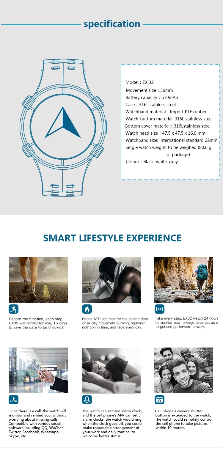 Function:Week,Message Reminder,Passometer,Alarm Clock,Fitness Tracker,Call Reminder,Remote Control,Sleep Tracker