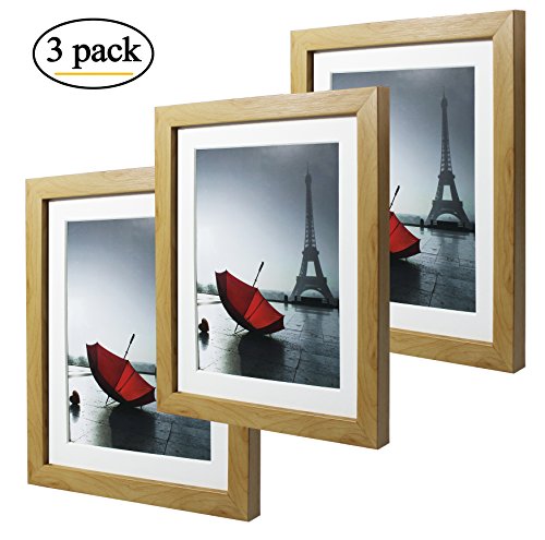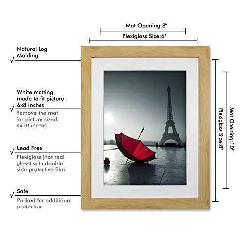 8 x 10 Log Picture Frame Set of 3 Made to Display Pictures 6x8 with Mat or 8x10 Without Mat Plexiglass Cover 3 Pack One Set for Wall & Tabletop (Log)