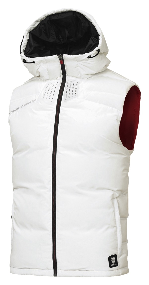 (테니스라인)폴리 소재의 남성 덕다운 베스트8020 덕다운을 사용하여 보온성을 강화하였고, 후드 푸린트 및 앞판 펀칭 작업으로 고급스러움을 더함.