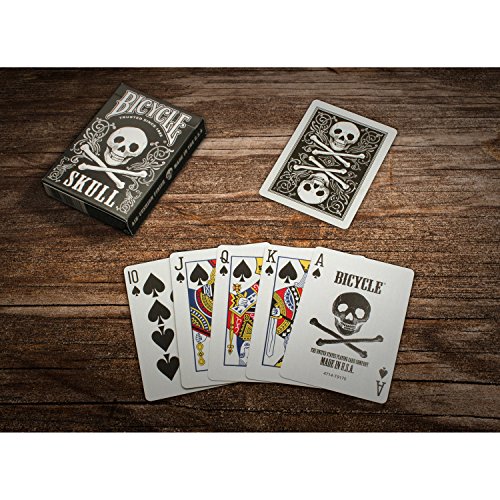 This design was taken from a historic plate in the Bicycle Brand archives, then updated for the 21st century. The back design is black and white, though we kept the standard four colors on the back of the deck. Perfect for pirates, villains, or anyone whose wardrobe is bursting with black. The Skull Deck features original artwork on the card back and the Ace of Spades.Feature