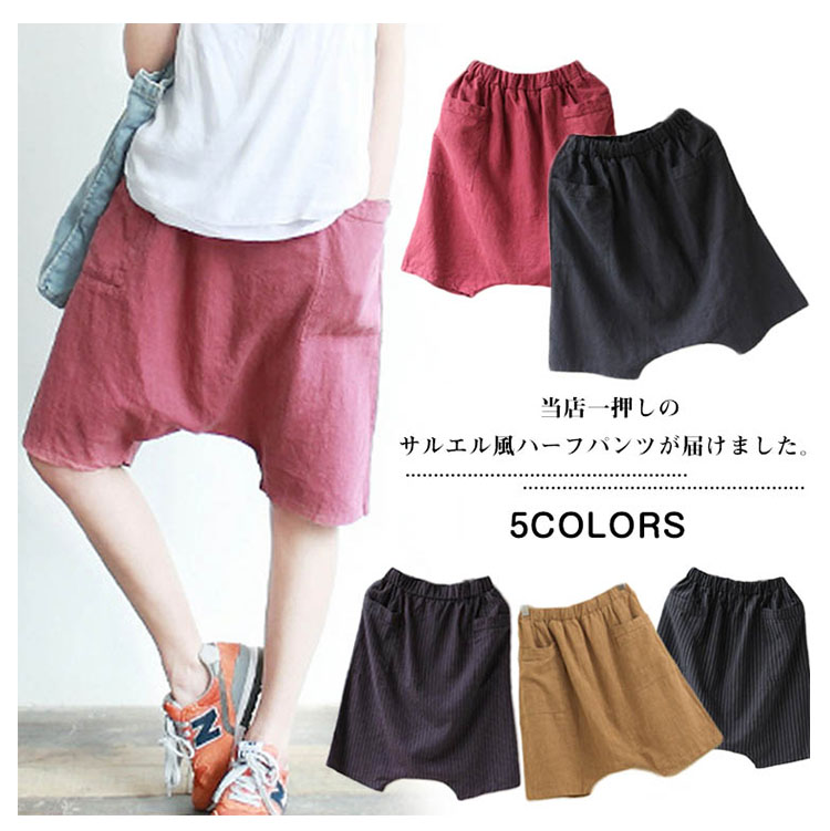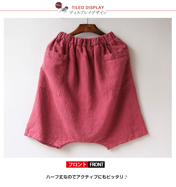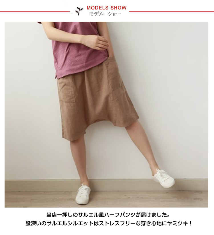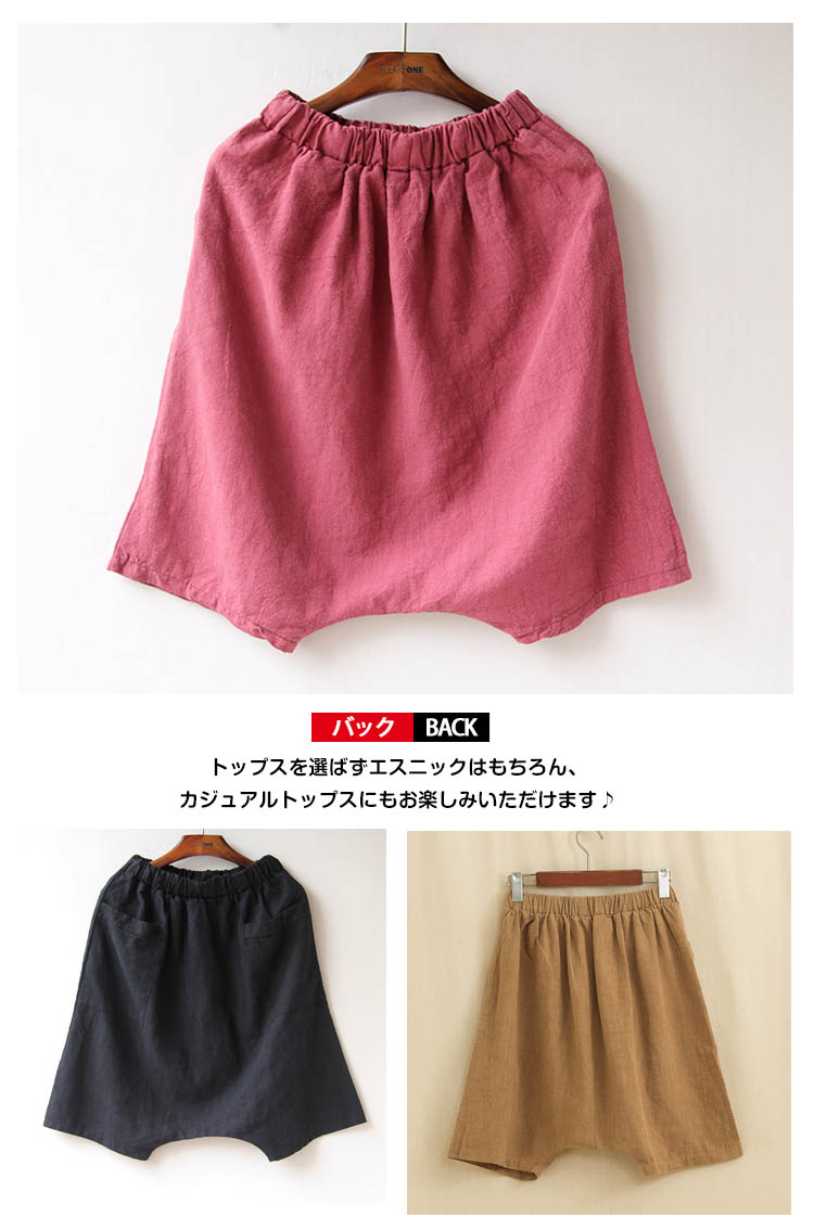 | 当店一押しのサルエル風ハーフパンツが届けました。股深いのサルエルシルエットはストレスフリーな穿き心地にヤミツキ!ゆったりウエスト&たっぷりフォルムで楽?に穿けちゃいます♪ハーフ丈なのでアクティブにもピッタリ♪トップスを選ばずエスニックはもちろん、カジュアルトップスにもお楽しみいただけます♪ | |