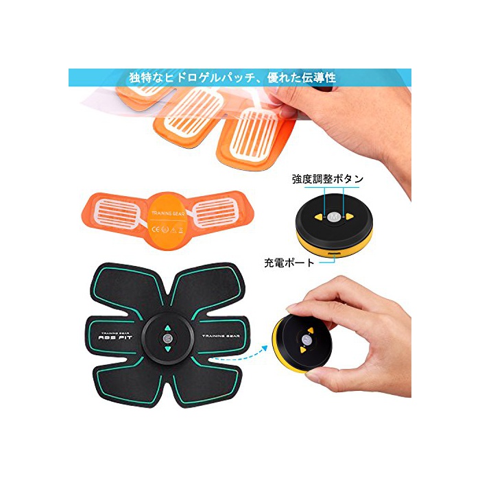 ◆조작 간단:자극을 줘 대 부위에 주체가 붙는 피트 패드를 붙입니다.전극부에 젤 씨트를 붙이고, 신체에 장착합니다.+버튼의 장누르기에,트레이닝 스타트.6종류의 훈련 모드와 9종류의 훈련 속도가 있다.시간의 경과와 함께,단계적으로 운동 강도가 높아져 갑니다.프로그램이 종료하면,자동으로 전원이 off고 있습니다