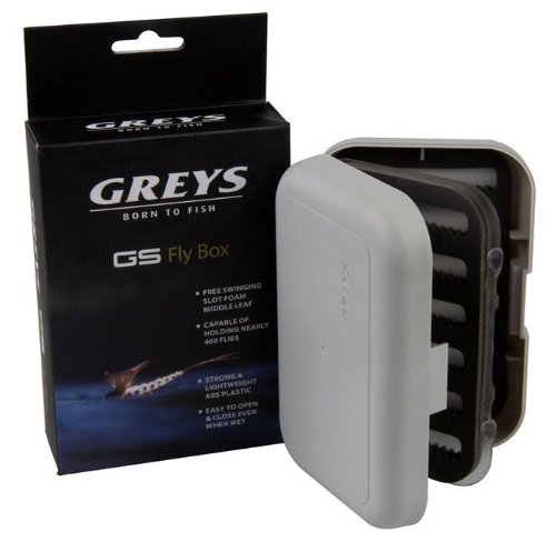 -. Feature : Greys fly box / Free swinging slot middle leaf / Holds up to 400 flies / Strong and lightweight ABS plastic / Easy to open and close