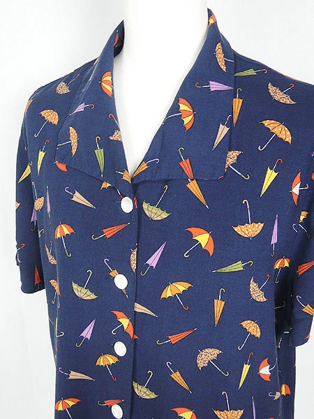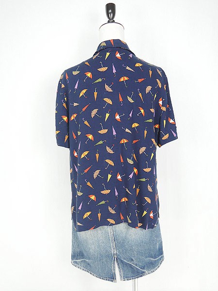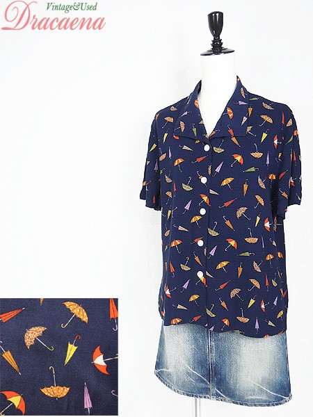 Ladies ブランド- カラー紺ベース メール便不可 コンディション★★★ 素材- 表記サイズ記載なし スタッフコメントタグ表記が消えているため、サイズ、素材不明。レーヨンのような素材感です。背中真ん中付近にスレダメージあり。 実寸サイズ 着丈 61 cm 身幅 50 cm 肩幅 40 cm 袖丈 22 cm ※ウエスト・ヒップ以外は平置き採寸