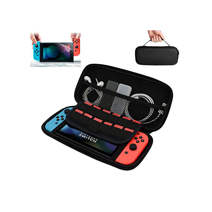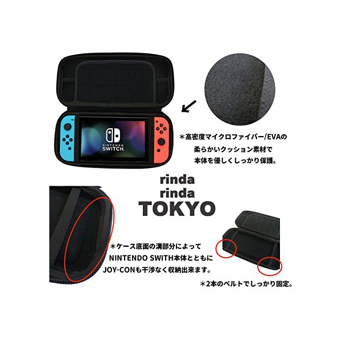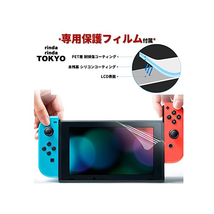Rinda 닌텐도 스위치 케이스 닌텐도 스위치 케이스 화면 보호 필름부 닌텐도Switch 케이스 세미 하드 케이스 개량형 내충격방오 레더조 게임 백 핸드 스트랩부 부속품 수납가